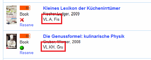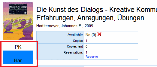 The location is also listed in the detailed information list of an item. Some libraries use colors as a guideline for different locations. The same colors can be found on an item so that readers find more easily what they are looking for.